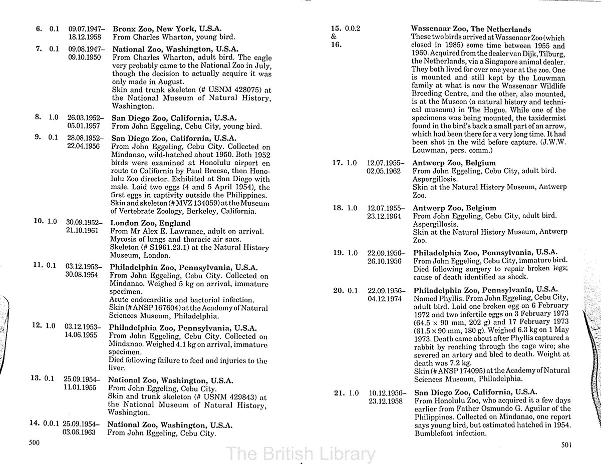 The Philippine eagle is evolutionarily distinct and globally endangered, an EDGE species highlighted and celebrated at Zoological Society of London (ZSL) London Zoo. London Zoo was the first known institution to keep a live specimen of the eagle in captivity.